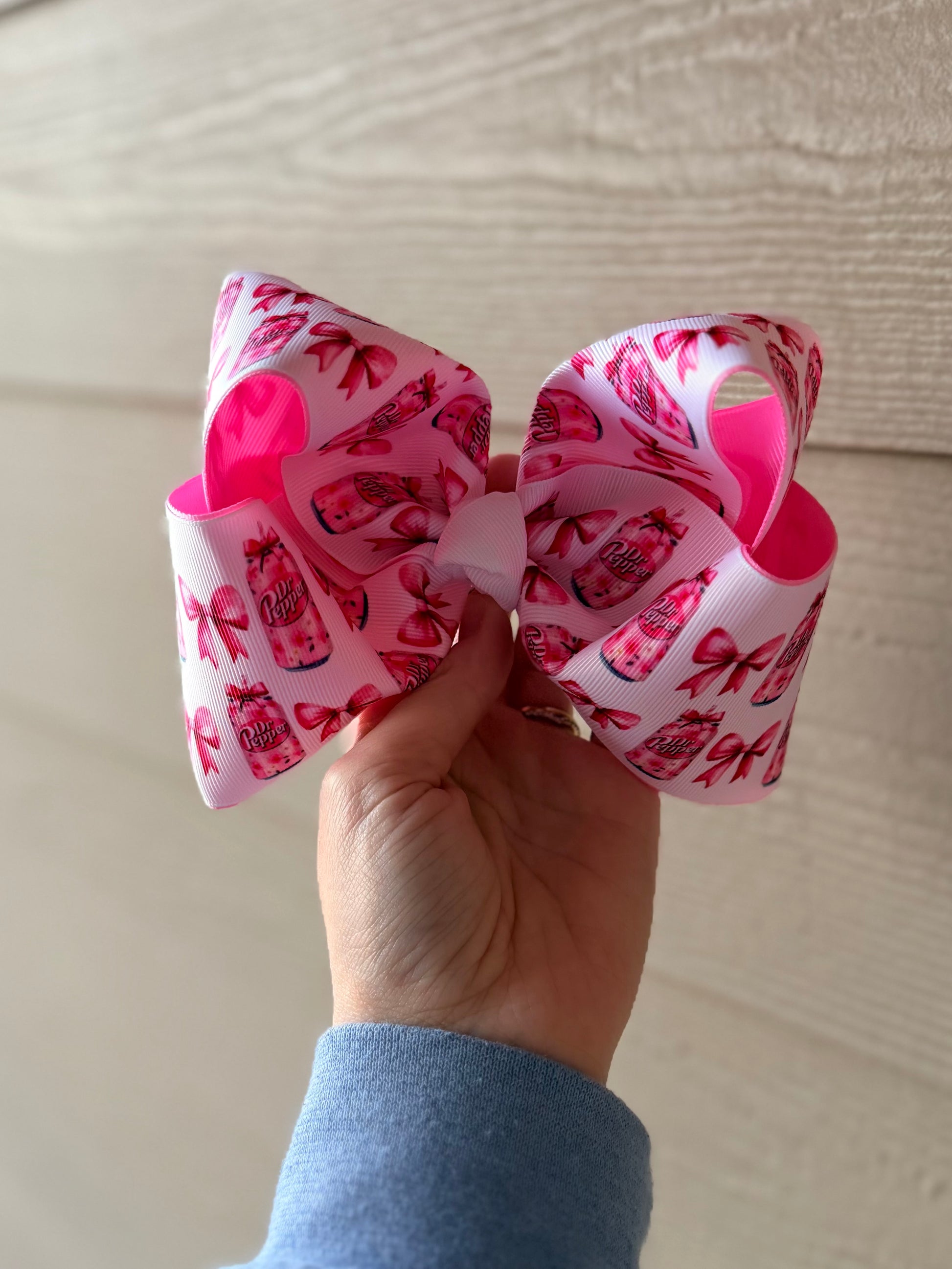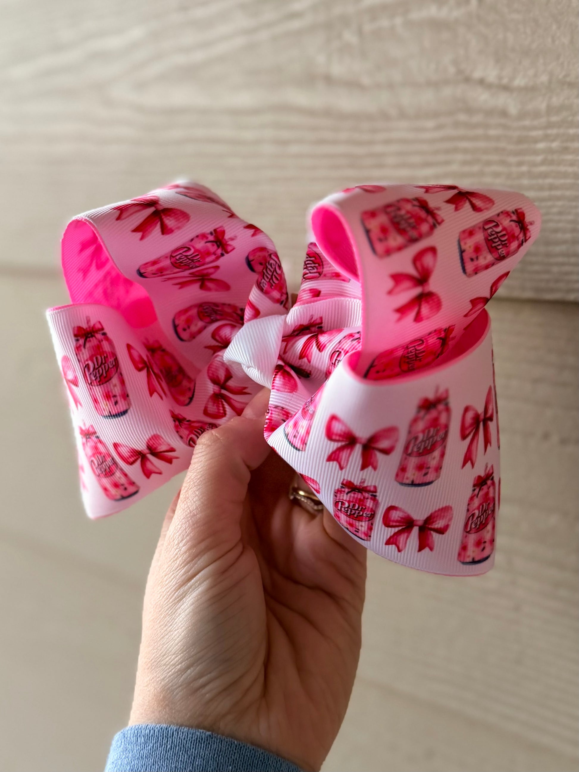 6in pink Dr. Pepper bow on an alligator clip